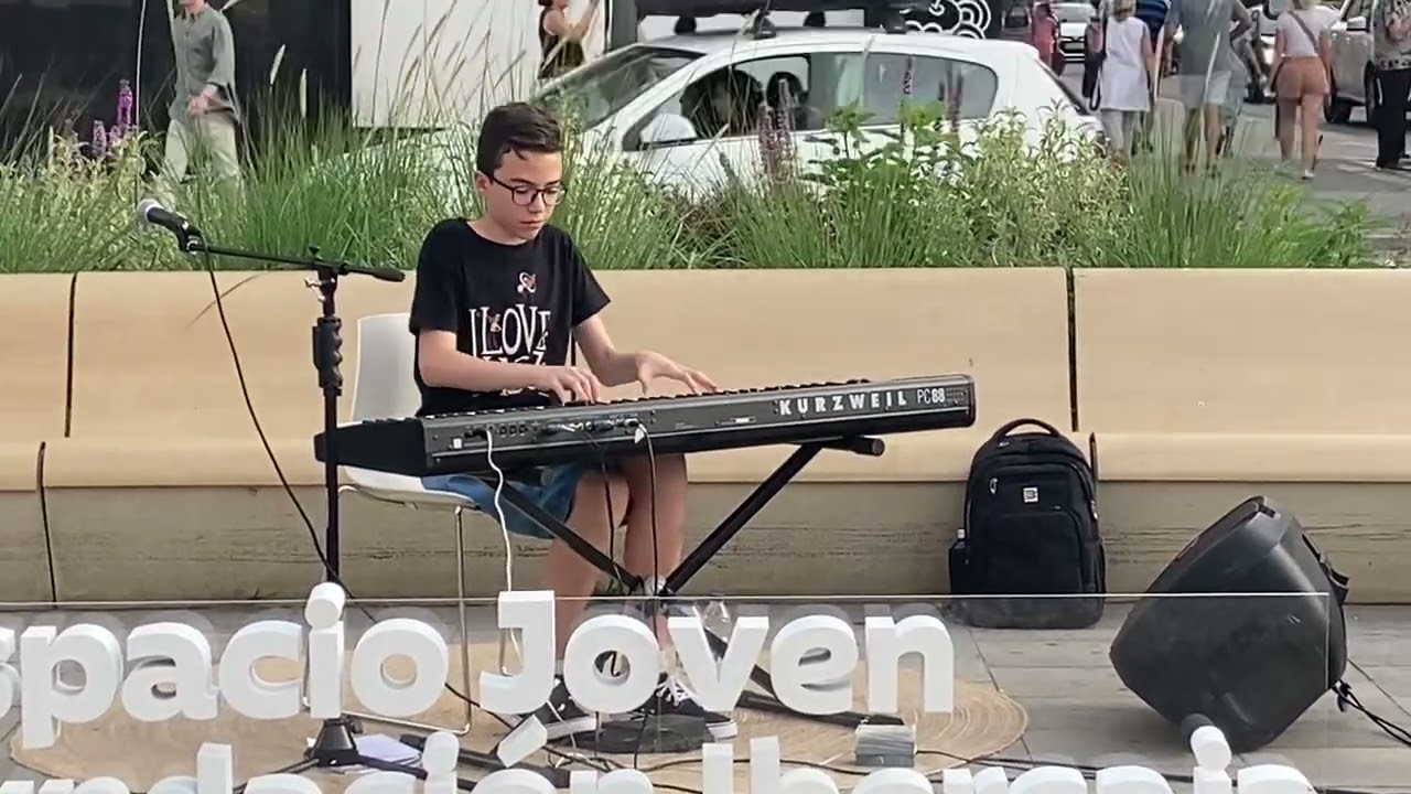 Miguel Lorán interpretando los temas de su disco Caleidoscopio y algunos standards de jazz en la Gran Vía de Zaragoza en un concierto organizado por el Espacio Joven de la Fundación Ibercaja.